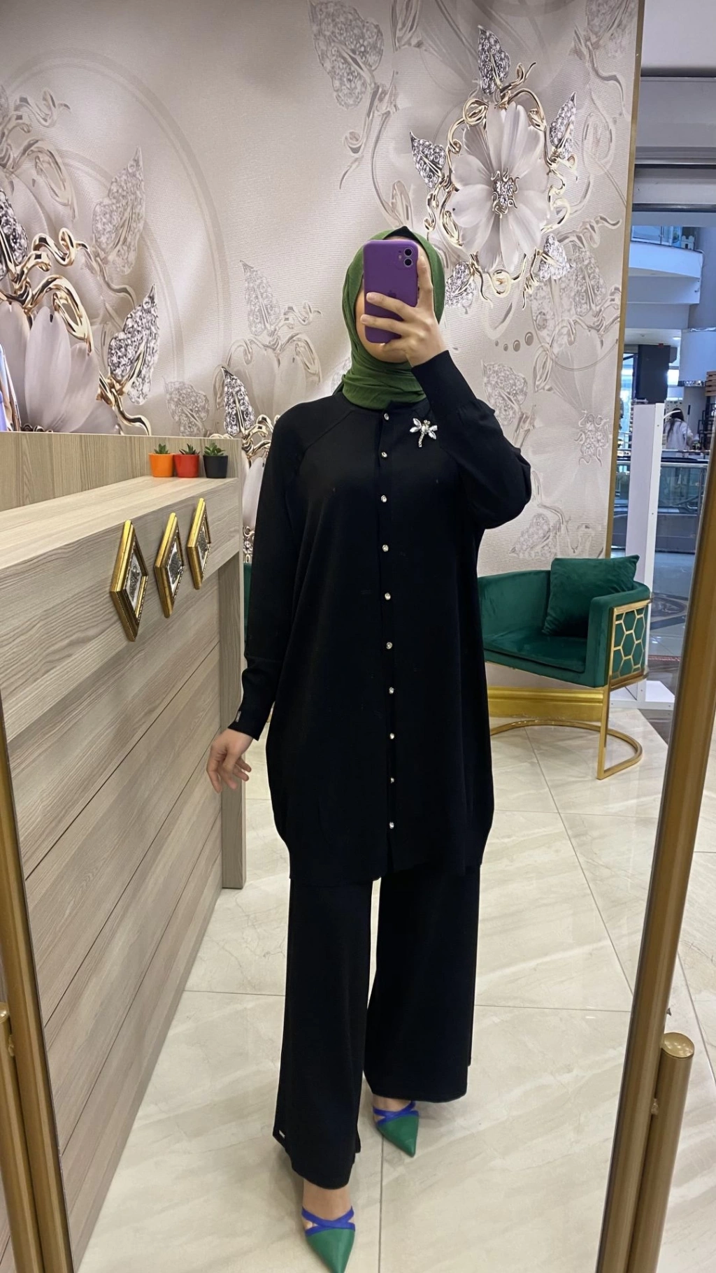 İnvee 7109 Çiçek Desenli Tunik Haki
