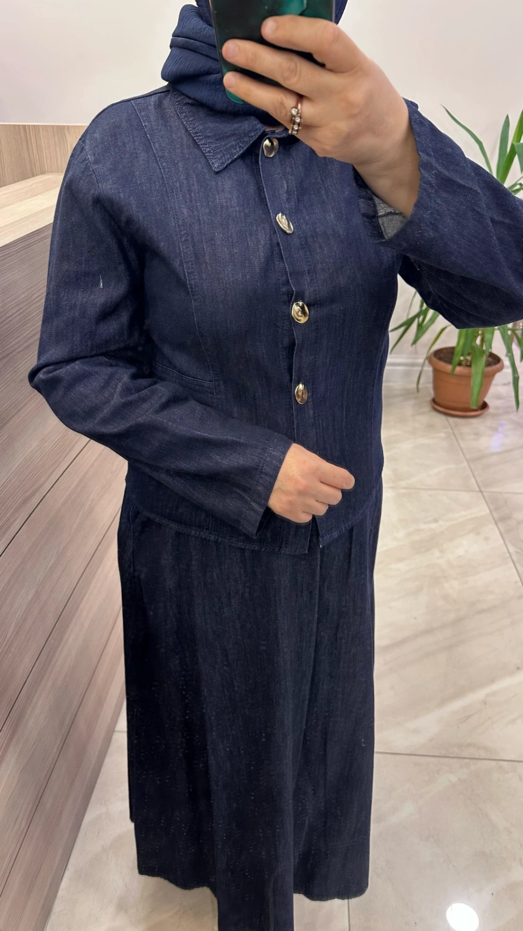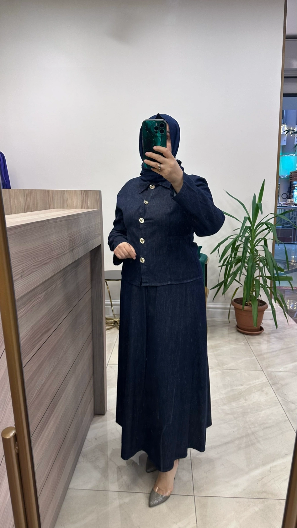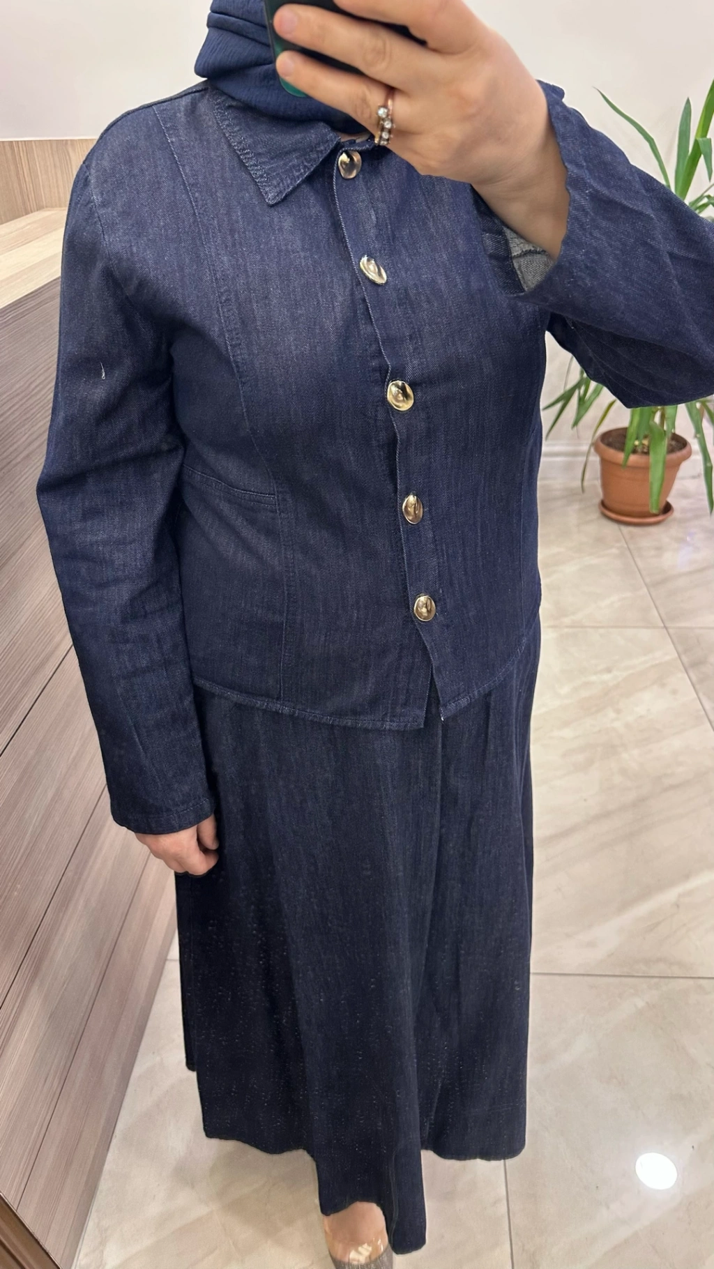 Magazin 7478 Koyu Denim Etekli Takım