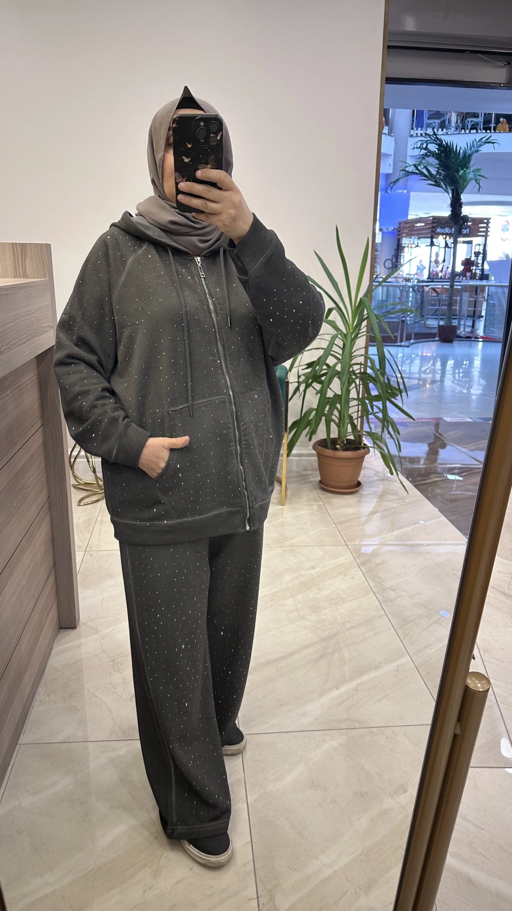 Taşlı İkili Takım Gri